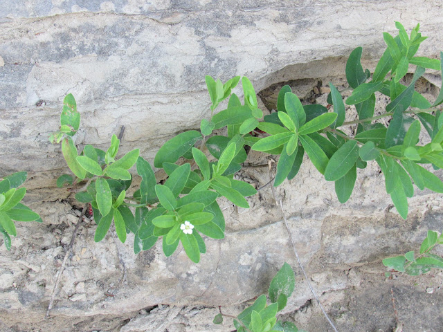 Flowering Spurge (Euphorbia corollata) grew out of a crack in the bluff itself...